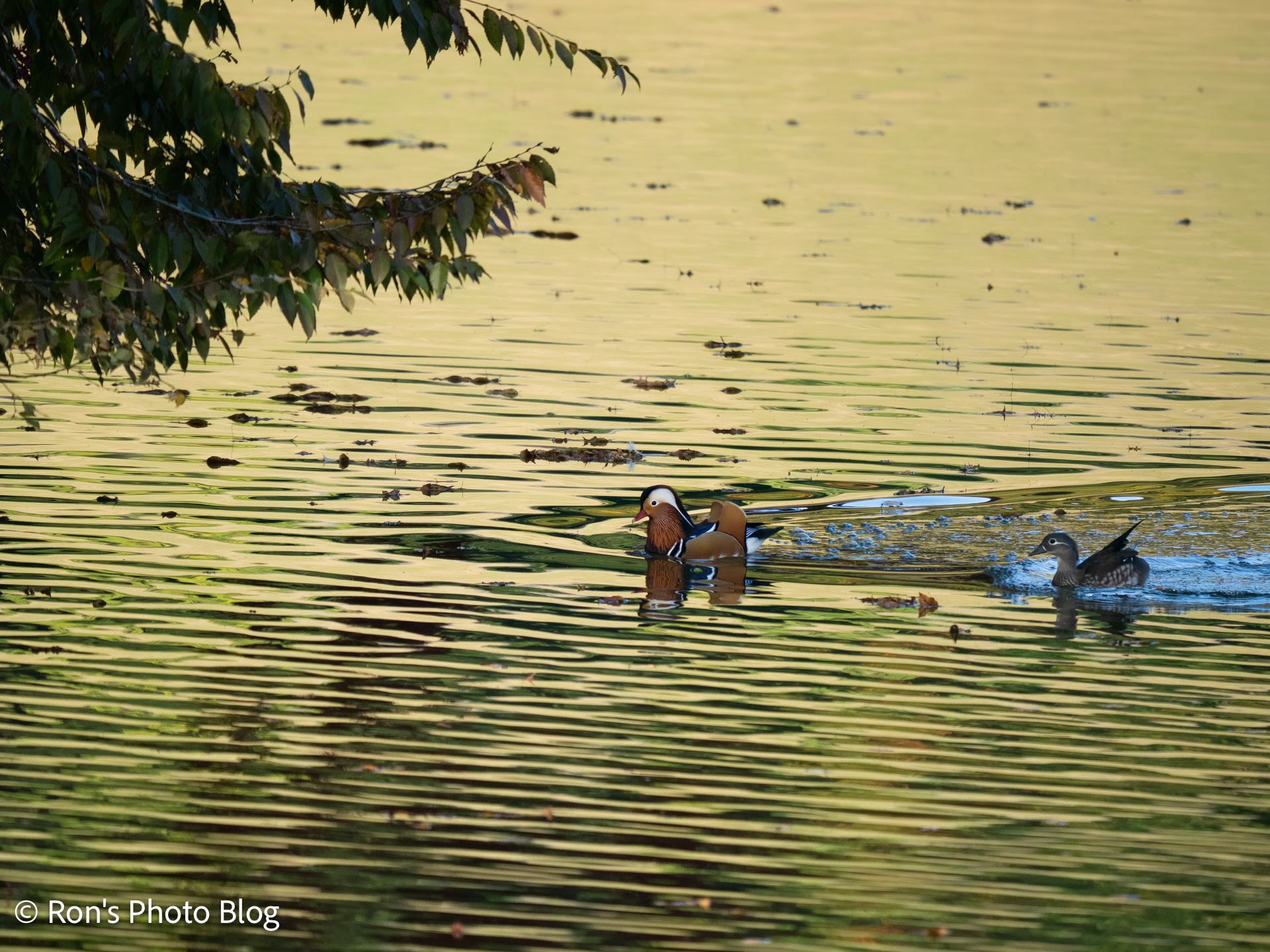 清掃作業は12時までで終了したようです。左側の岸に向かう二羽のオシドリもいましたがすぐに右側に移りました。