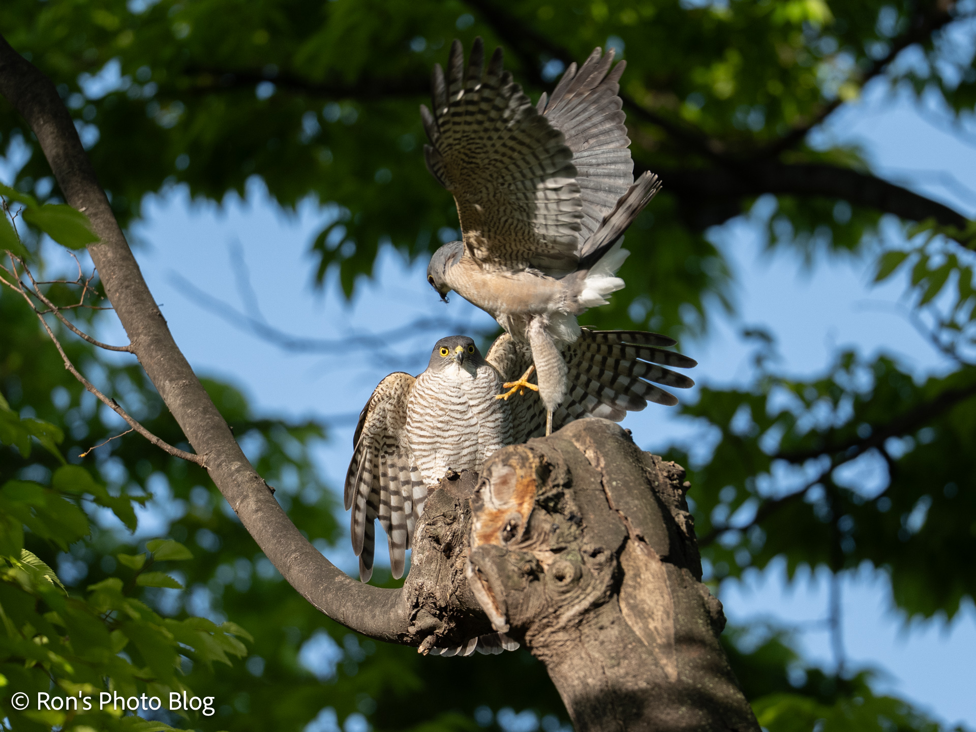 メスは基本的に巣の中や近くの木にいて、オスが獲物を捕まえてくるのを待っていて戻ってくると餌の受け渡しが行われます。